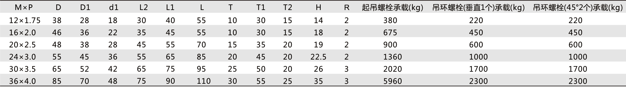 螺紋直徑(mm)